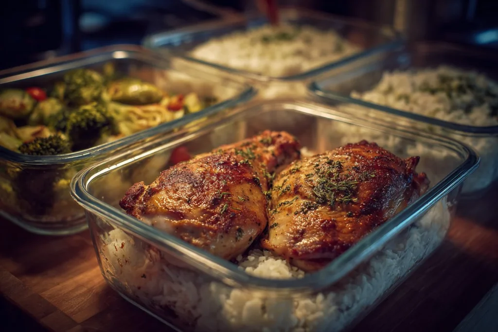 Storing Chicken Meal Prep properly ensures that your meals maintain flavor and quality. Keep the meal prep containers sealed in the refrigerator for up to five days. If you want to extend the shelf life, consider freezing portions for up to three months. When reheating, use a microwave or oven, ensuring that the chicken reaches an internal temperature of 165°F (75°C). If the chicken appears dry after reheating, try adding a splash of broth or a drizzle of olive oil to retain moisture and enhance flavor. Avoid leaving the meals at room temperature for more than two hours to ensure food safety.