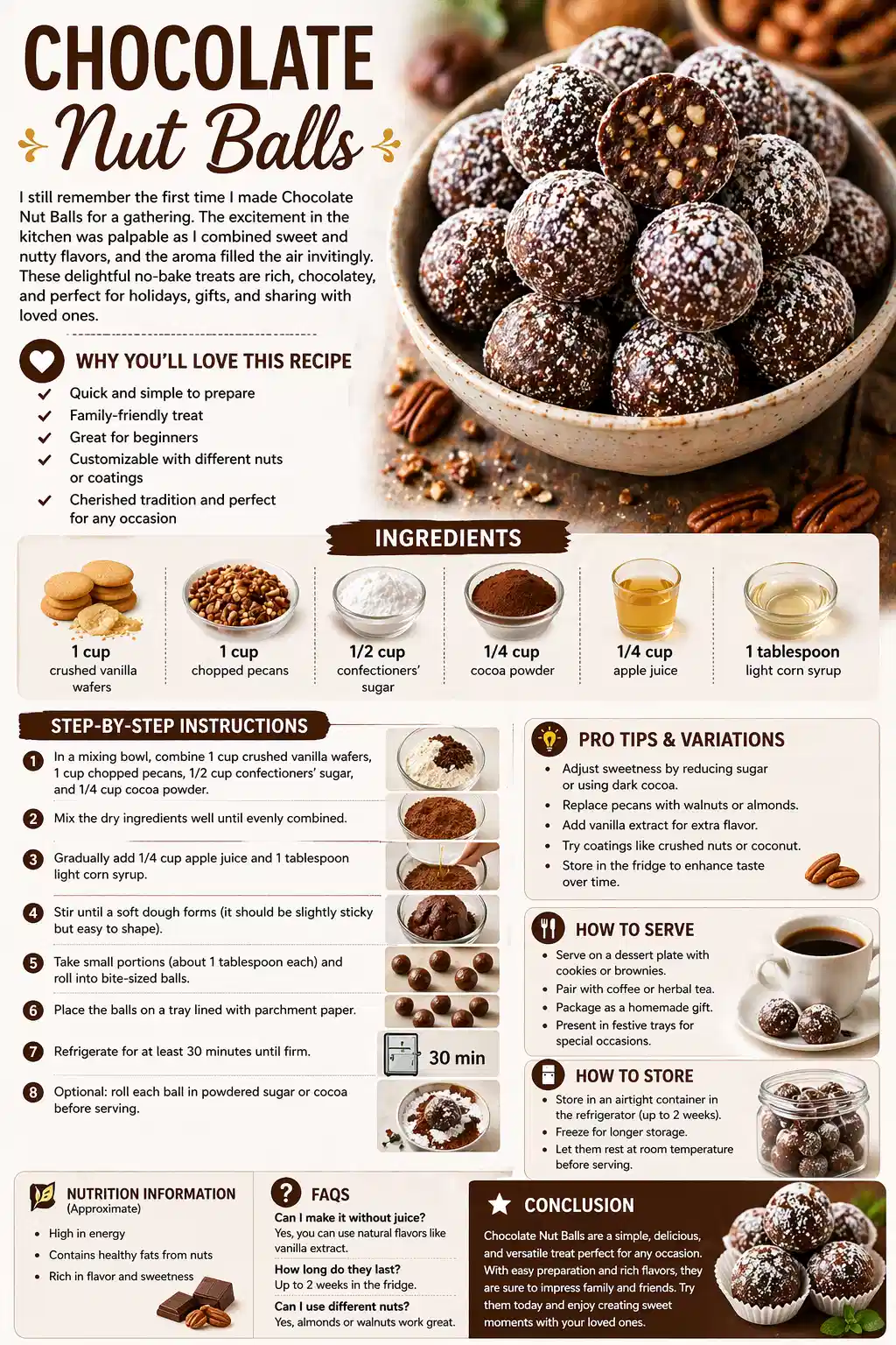 Chocolate Nut Balls are a simple, delicious, and versatile treat perfect for any occasion. With easy preparation and rich flavors, they are sure to impress family and friends. Try them today and enjoy creating sweet moments with your loved ones.