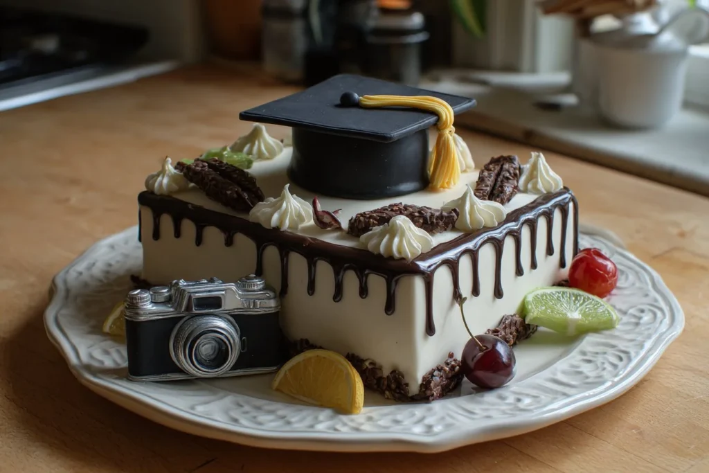 - Presentation: Place the cake on a decorative cake stand for an elegant display. Surround it with small details like mini diplomas or photos from the graduation day.